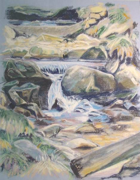 felsige Bachbett, oder das Wasser wird am Wehr in den Dammgraben